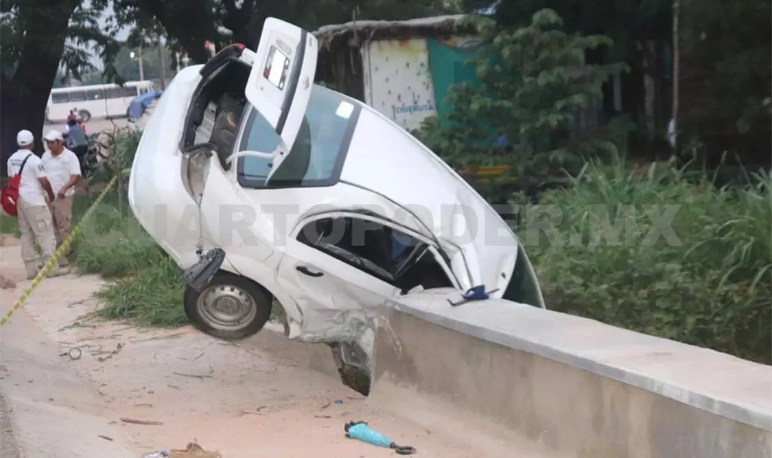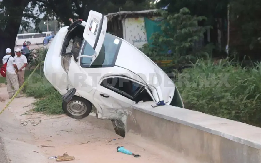 Pasadas las 17:00 horas el 911 le pidió al personal del Cuerpo de Bomberos que se trasladara cerca de la gasolinera Gocoz, pues un vehículo se había salido del camino y chocado contra un muro de contención. Ahí observaron un Chevrolet de color blanco.