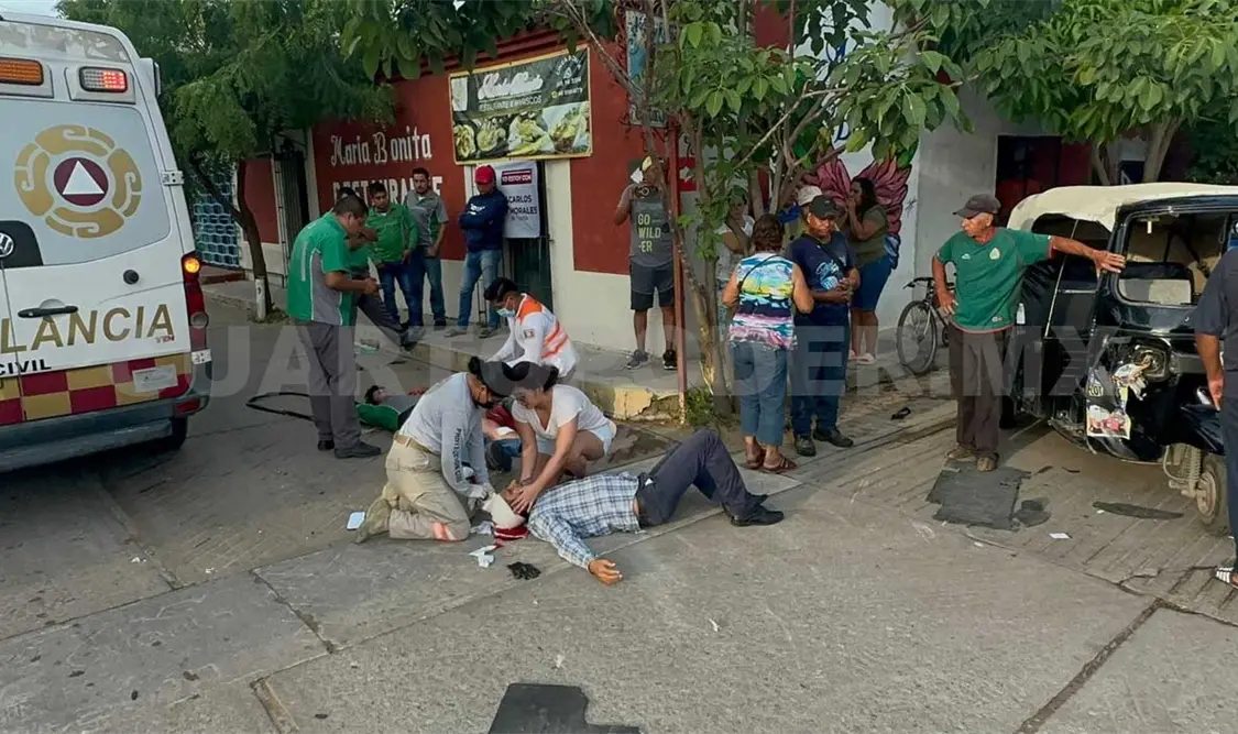 Los lesionados, con probable fractura en pierna derecha y traumatismo, recibieron la atención médica por paramédicos de Protección Civil y bomberos, siendo trasladados al centro médico más cercano.