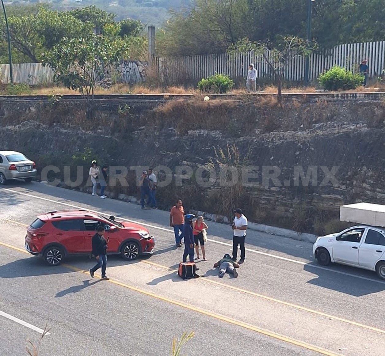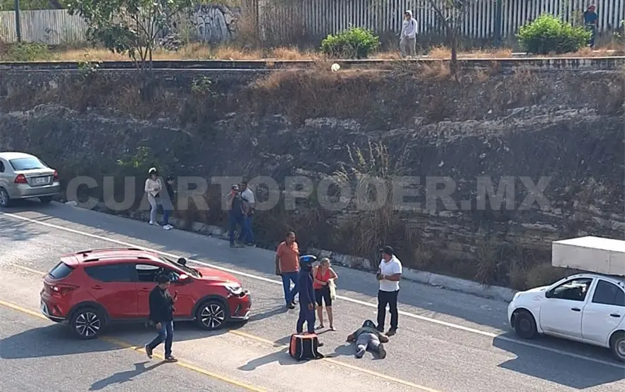 El motorista salió proyectado de su asiento y acabó tendido sobre la carpeta asfáltica. Tras casi 20 minutos, arribaron paramédicos de Protección Civil Estatal (PC) que le brindaron la atención prehospitalaria.