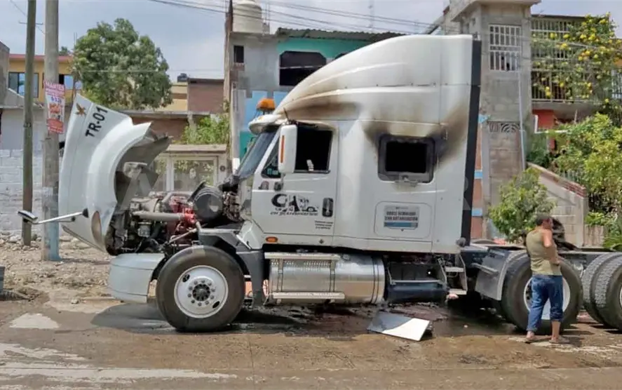 De acuerdo con datos obtenidos por las autoridades de Tránsito y Vialidad Municipal, un presunto cortocircuito en el cableado provocó que un tractocamión de la marca International, color blanco y con engomado federal, ardiera en llamas en la cabina, por lo que la dueña dio aviso a través del 911.
