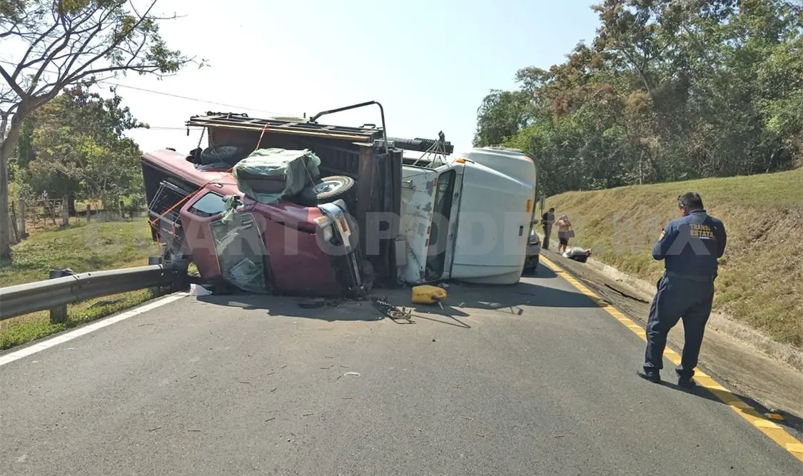 Se informó que un camión transmigrante, tipo volteo de la marca Internacional, conducido por Edinsor Avelino “N” (59 años), que procedía de Estados Unidos hacia Guatemala, volcó debido a una falla mecánica.