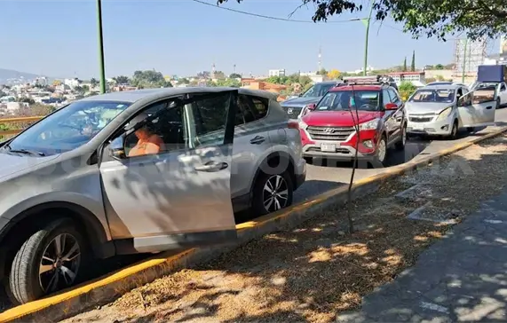 Derivado de este percance, otro accidente se registró frente a la Unicach, donde la intensa carga vehicular provocó un choque múltiple entre tres automóviles. En este caso, solo se reportaron daños materiales.