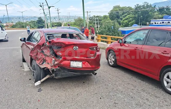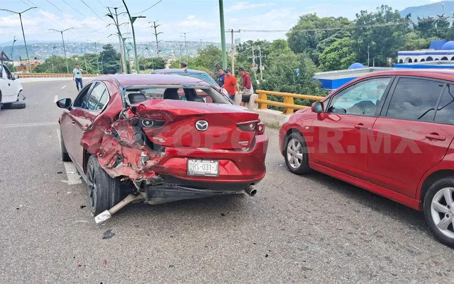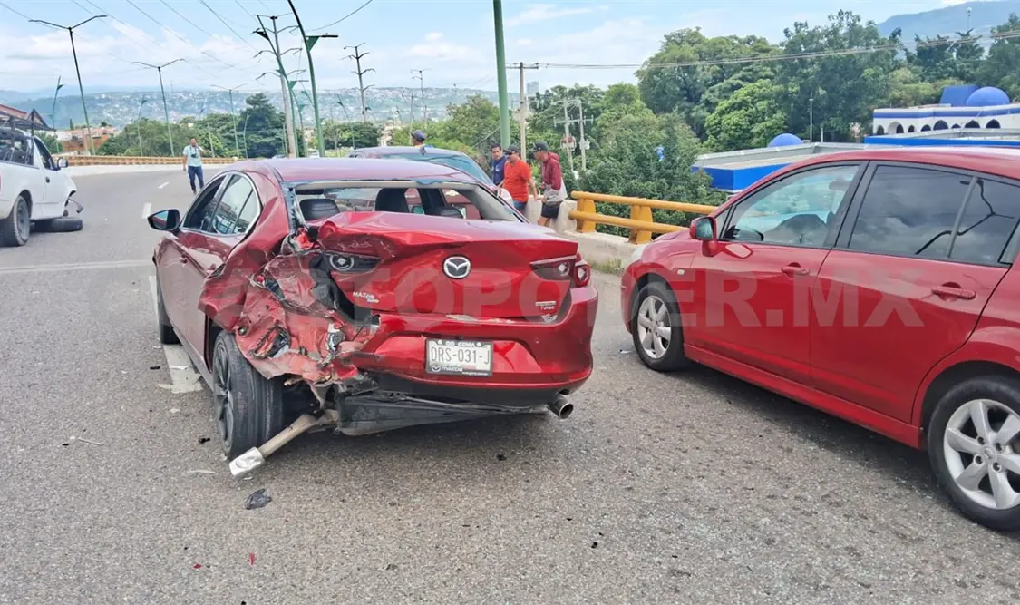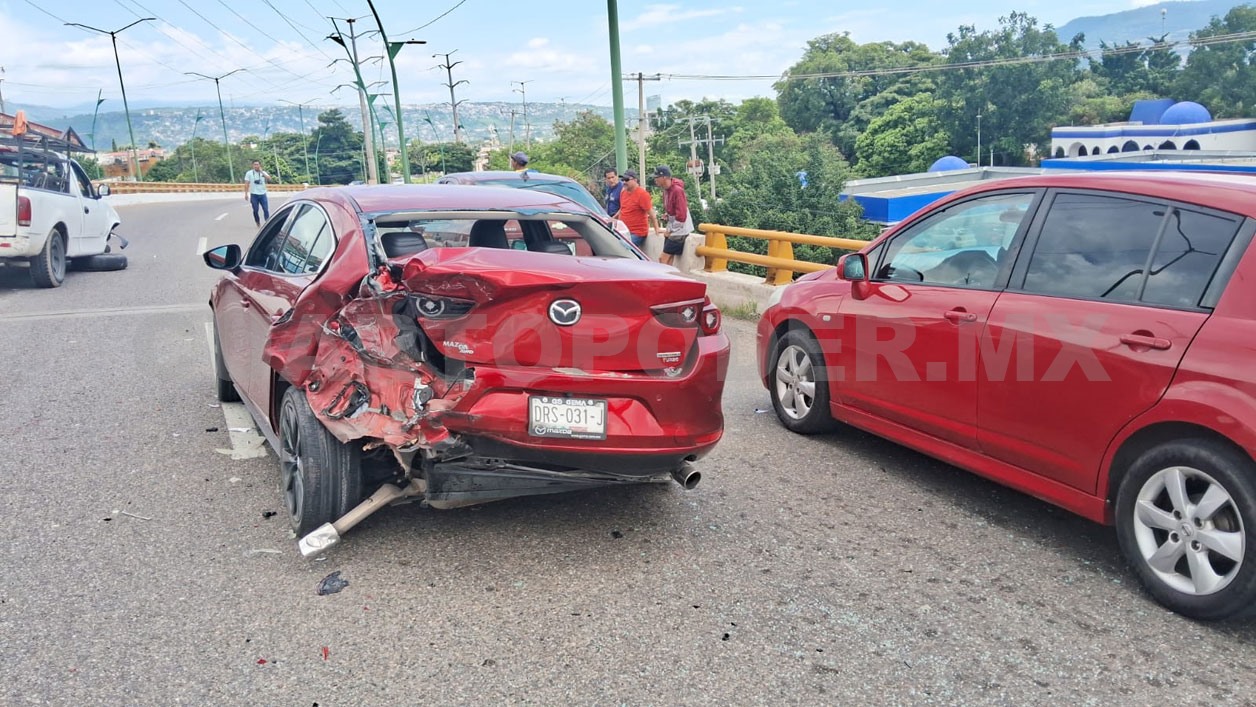 El percance ocurrió alrededor de las 13:10 horas, cuando cuatro vehículos particulares colisionaron de forma aparatosa sobre el puente vehicular, en el carril que conduce de poniente a oriente.
