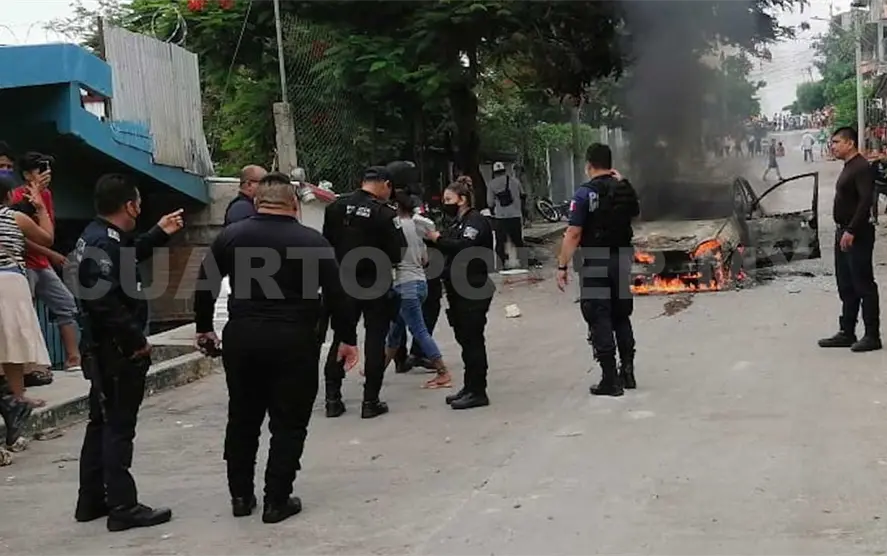 Tras casi una hora de golpes y gritos, los agresores incendiaron un vehículo de la marca Chevrolet tipo Chevy y una motocicleta.