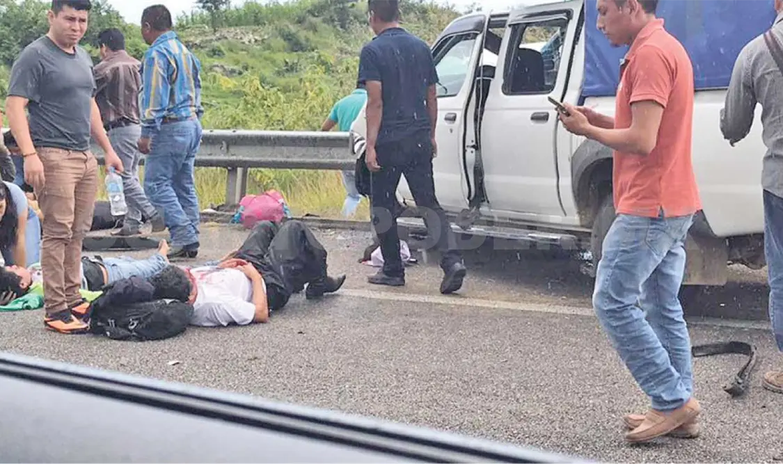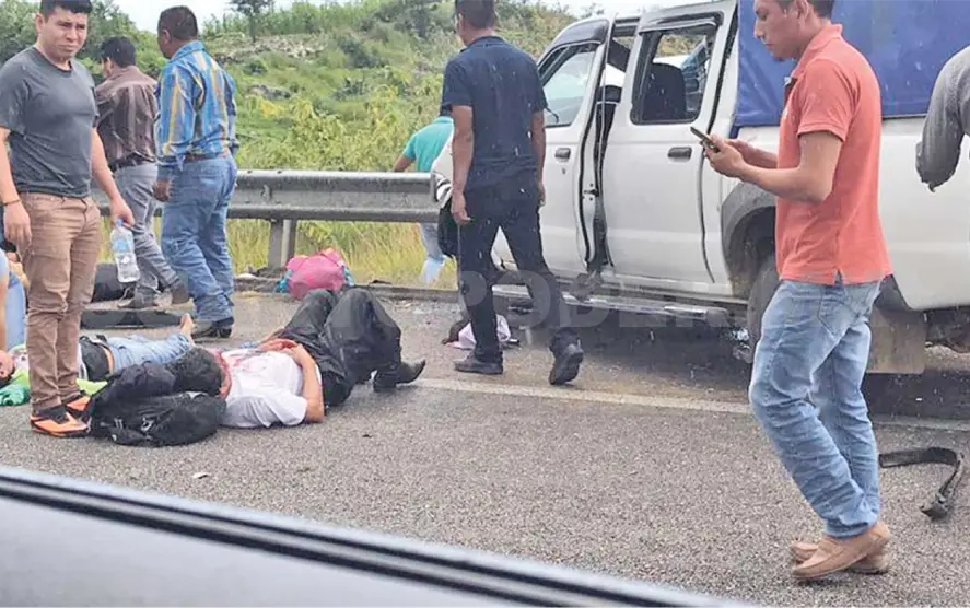 Asimismo una camioneta marca Nissan de redilas, cabina y media, de color blanca con placas de circulación del estado de Chiapas, al parecer fue la que propició el accidente.