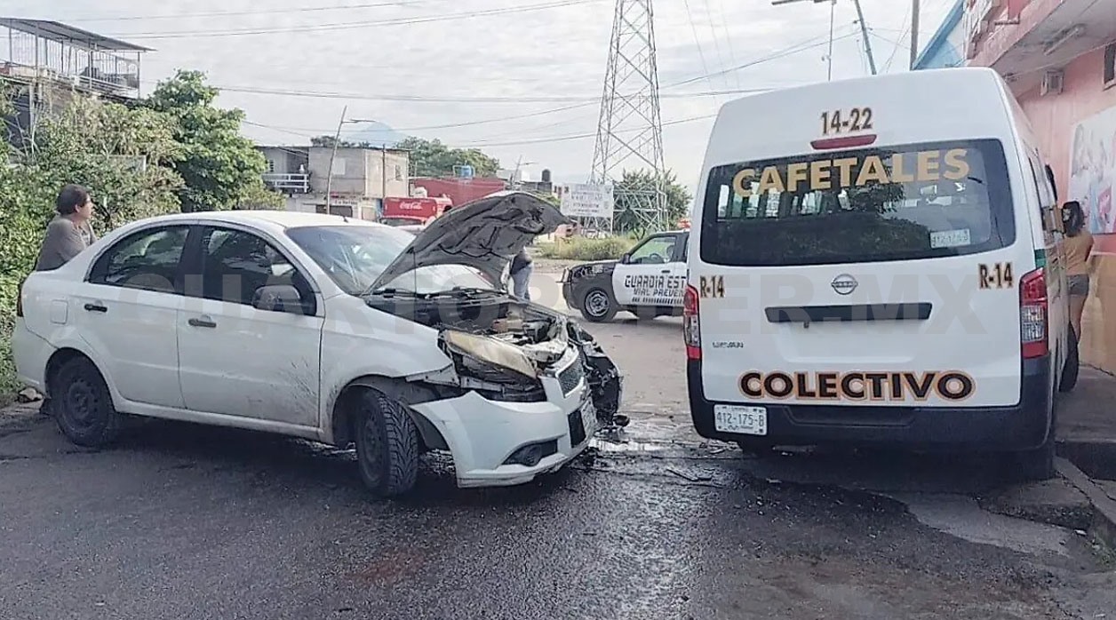 Cuatro pasajeros de una combi en modalidad de colectivo resultaron lesionados, entre ellos dos menores de edad, al ser impactada la unidad por un vehículo particular sobre el bulevar de la colonia Cafetales, al sur del municipio de Tapachula.