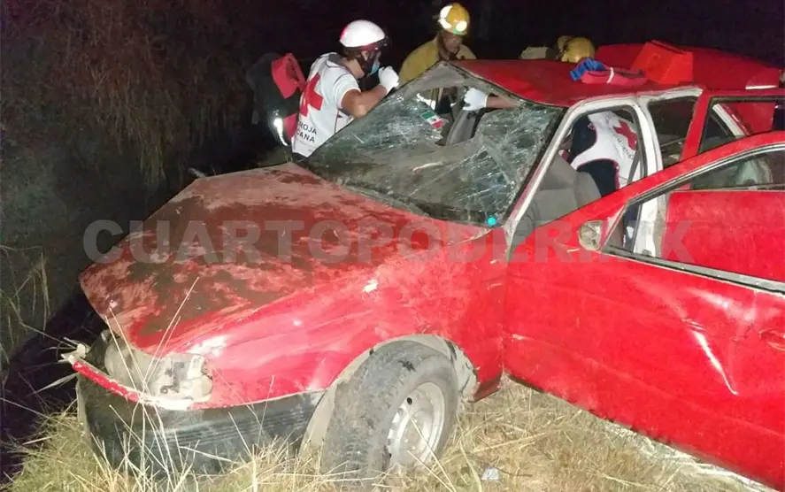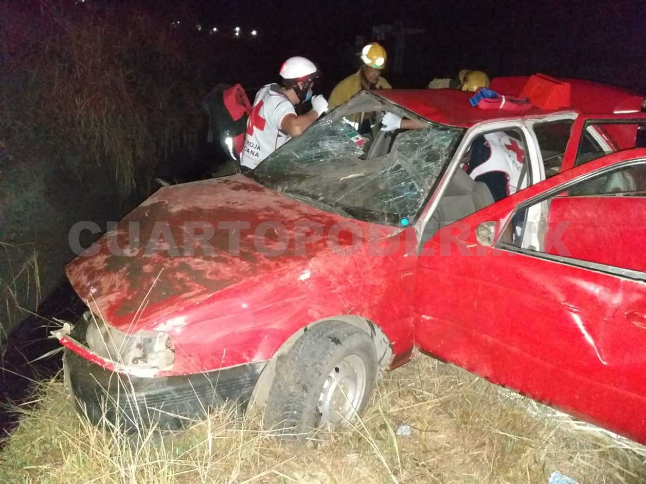 Fue a la altura del fraccionamiento Terranova y entronque del Par Vial que ocurrió el percance, ya que el conductor de un vehículo de la marca Nissan tipo Tsuru, color rojo, con placas de circulación DSG-87-62, perdió el control y se salió de la cinta asfáltica, terminando volcado.