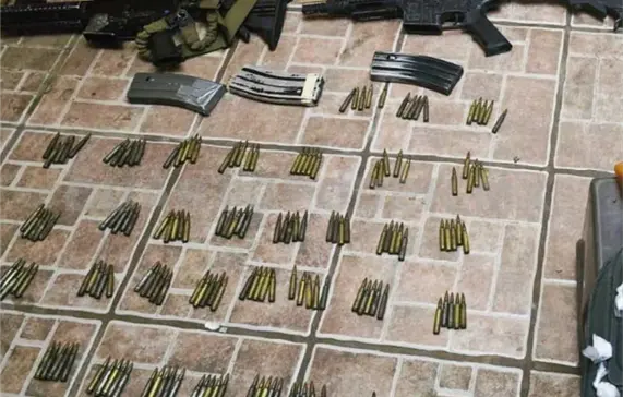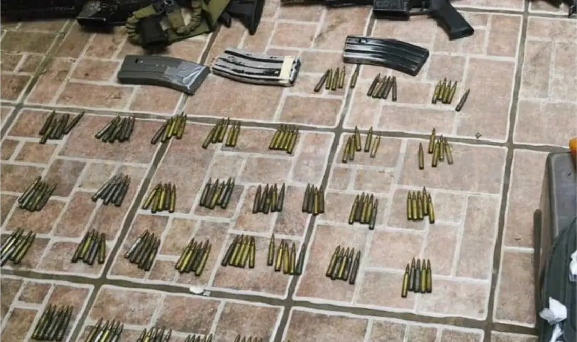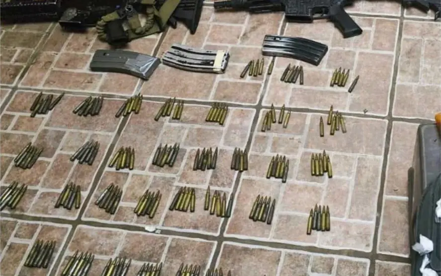 Durante la inspección en la ubicación señalada en la denuncia, se incautaron 335 cartuchos útiles calibre 5.56, dos armas largas, diversos cargadores, chalecos tácticos, ropa táctica y 70 dosis del narcótico conocido como cristal.