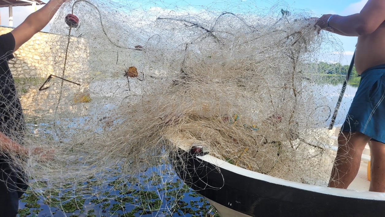 Durante un recorrido de supervisión efectuado este fin de semana, la Unidad de Reacción Anfibia Pakal (URAP) en coordinación con autoridades municipales lograron asegurar una malla robalera de aproximadamente 50 metros de longitud, 5 pulgadas de luz de malla y 6 metros de caída.