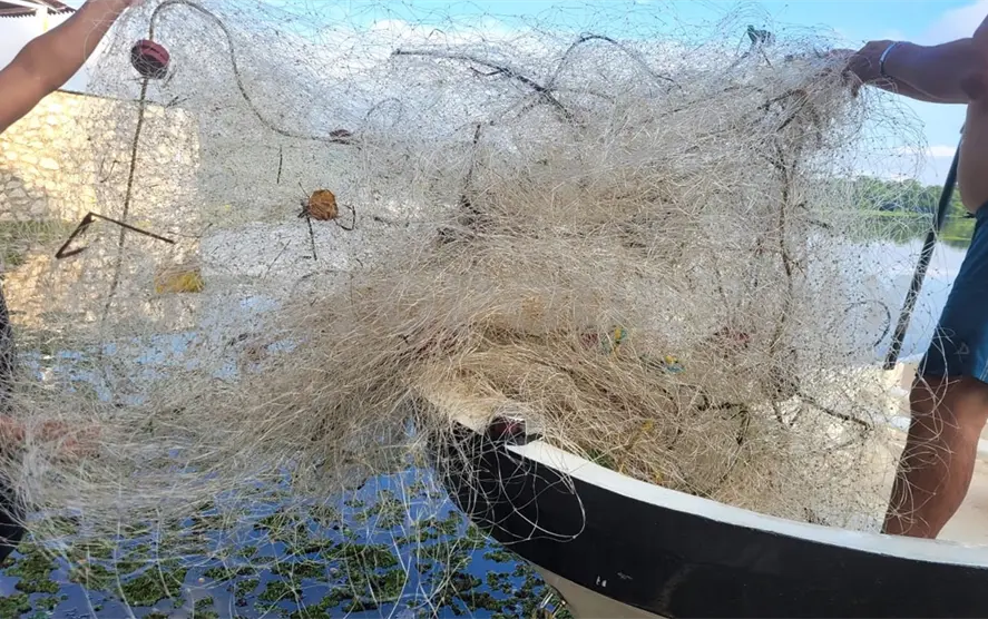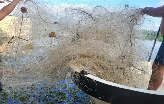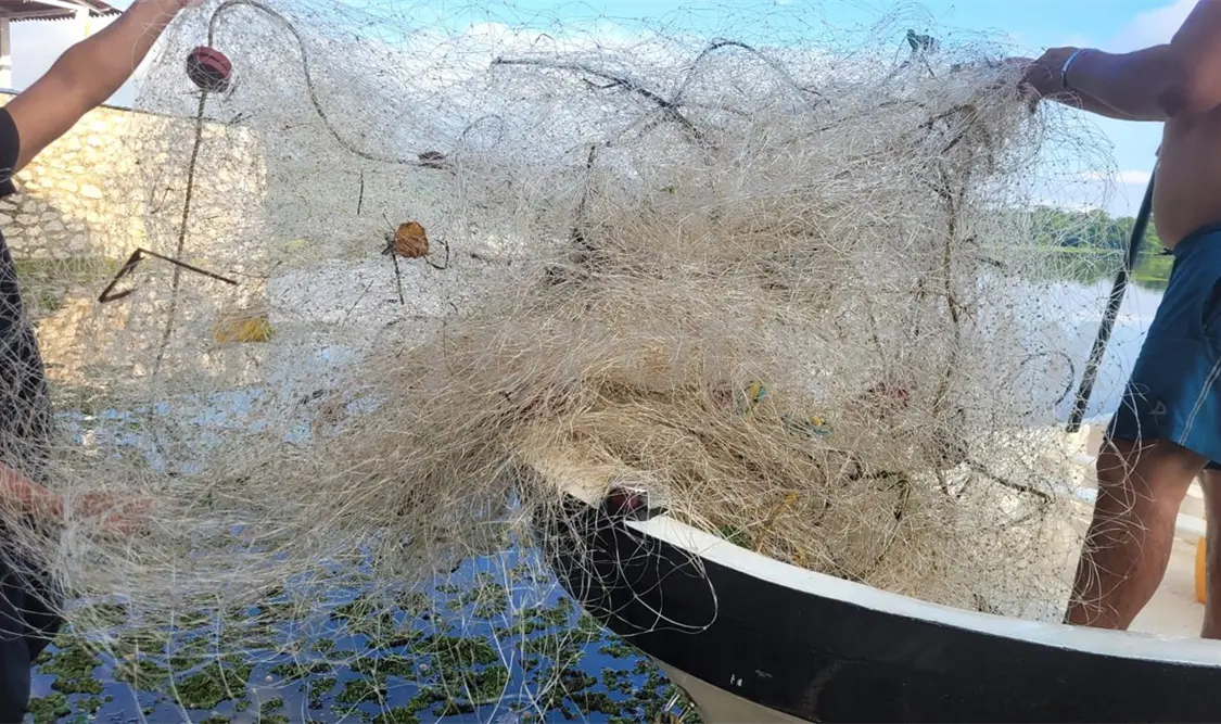 Los elementos procedieron de inmediato a extraer y poner a disposición la red, que presuntamente había sido colocada por pescadores furtivos durante la noche.