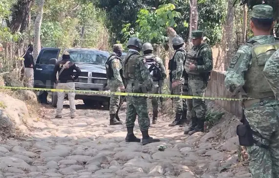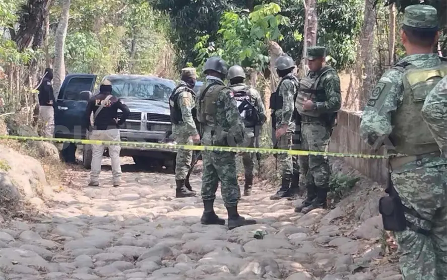 Una fuerte movilización policíaca, de la Guardia Nacional y del Ejército Mexicano, propició el hallazgo del cuerpo sin vida de un hombre, asesinado a balazos y dejado debajo de una camioneta en la que también encontraron armas de fuego.