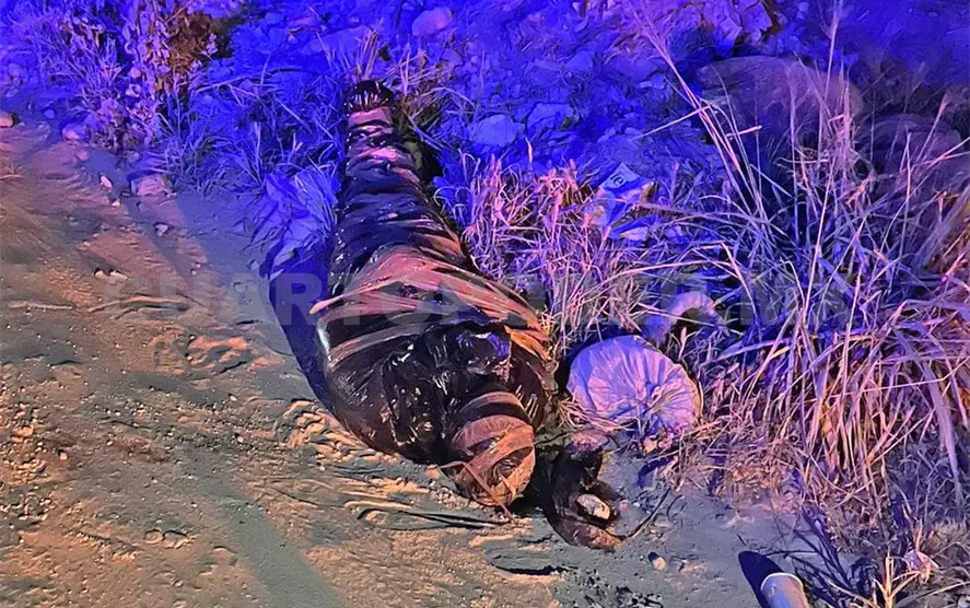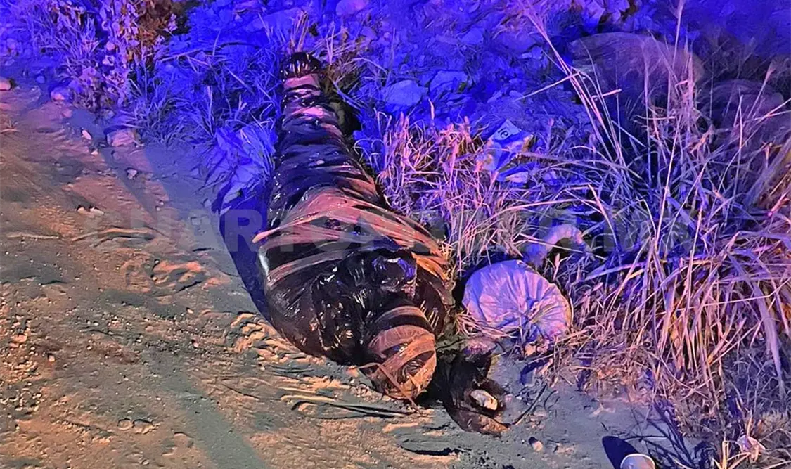 El cadáver estaba cubierto con bolsas de nylon y asegurado con cinta canela.