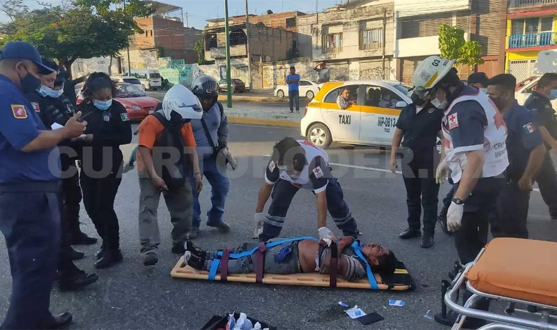 Minutos después acudieron paramédicos de la Cruz Roja que valoraron al lesionado y lo trasladaron de urgencia al hospital regional Doctor Gilberto Gómez Maza, para recibir asistencia médica y toma de radiografías en busca de descartar una lesión más severa.