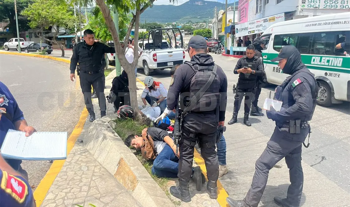 Con múltiples lesiones y fracturas acabaron dos jóvenes luego de derrapar a bordo de su motocicleta sobre la Calzada al Sumidero, a la altura de la colonia Albania Alta, en la capital Tuxtla Gutiérrez.