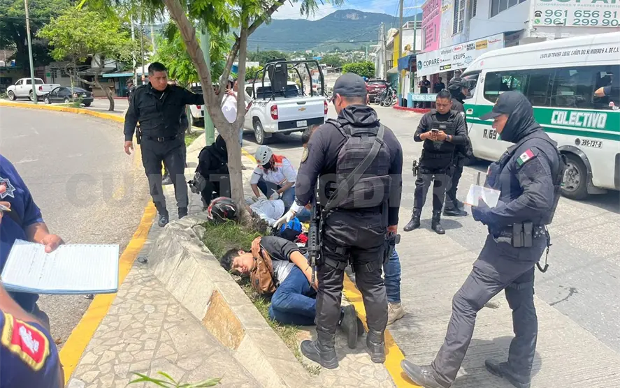 Al lugar llegaron los paramédicos de Protección Civil Municipal, quienes valoraron a ambos e indicaron que el conductor presentaba una fractura en la clavícula y la mujer tenía múltiples lesiones en las extremidades.