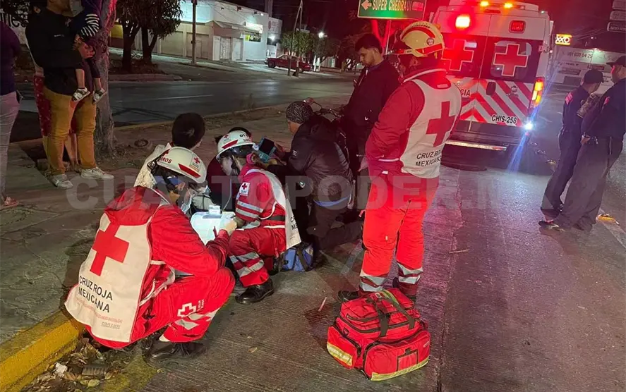 Una pareja a bordo de una motocicleta resultó malherida luego de estar involucrada en un accidente de tránsito sobre el libramiento Sur, a la altura de 12.ª Poniente de Tuxtla Gutiérrez, en la colonia Burocrática.