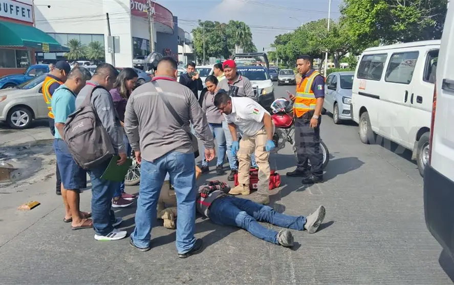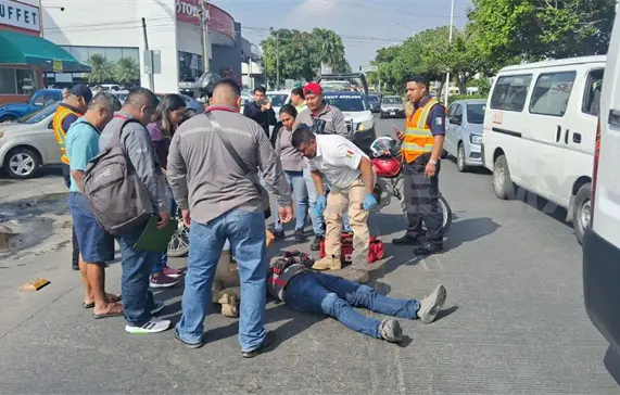 De acuerdo con los primeros reportes, el conductor presuntamente perdió el control de la motocicleta y cayó sobre la carpeta asfáltica, quedando tendido boca abajo y aparentemente inconsciente tras el impacto.