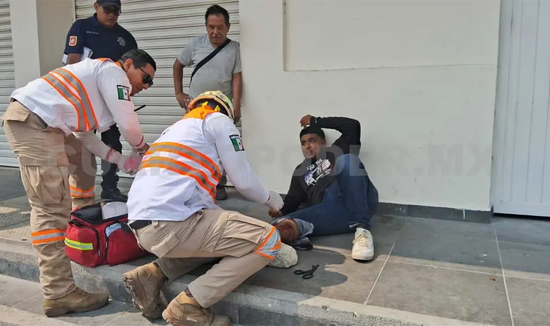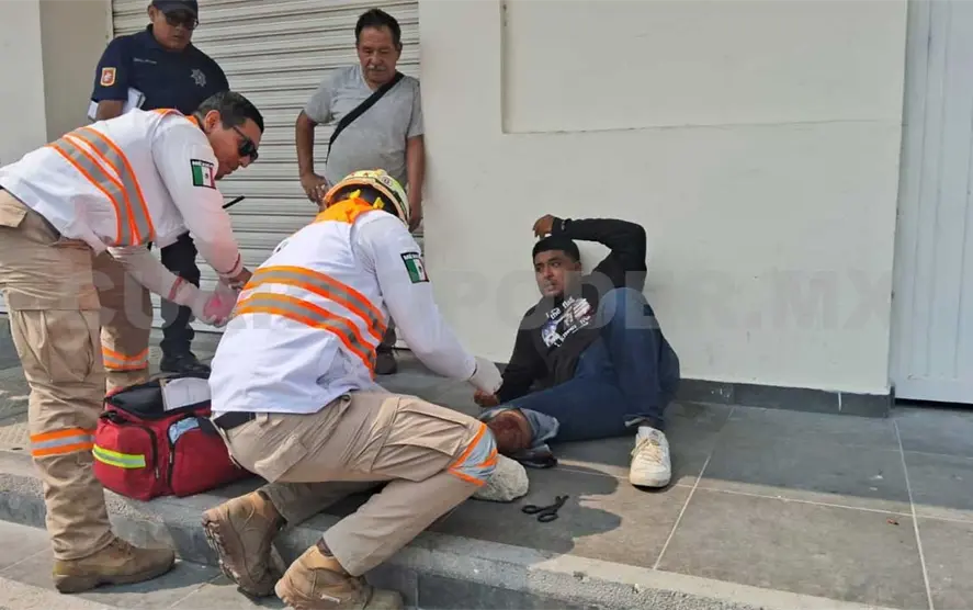 Con una grave herida cortante en una pierna terminó un joven motociclista luego de derrapar sobre el bulevar Ángel Albino Corzo, a la altura del crucero con el bulevar El Pencil, en la ciudad de Tuxtla Gutiérrez.