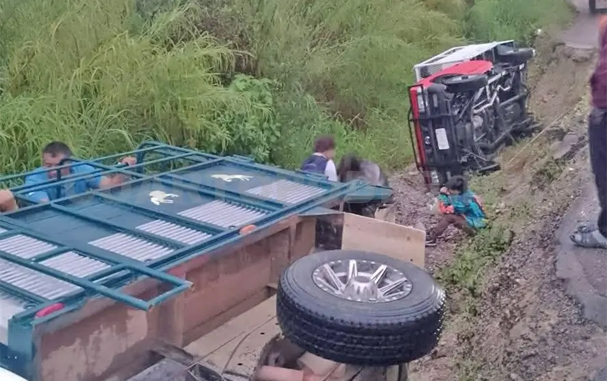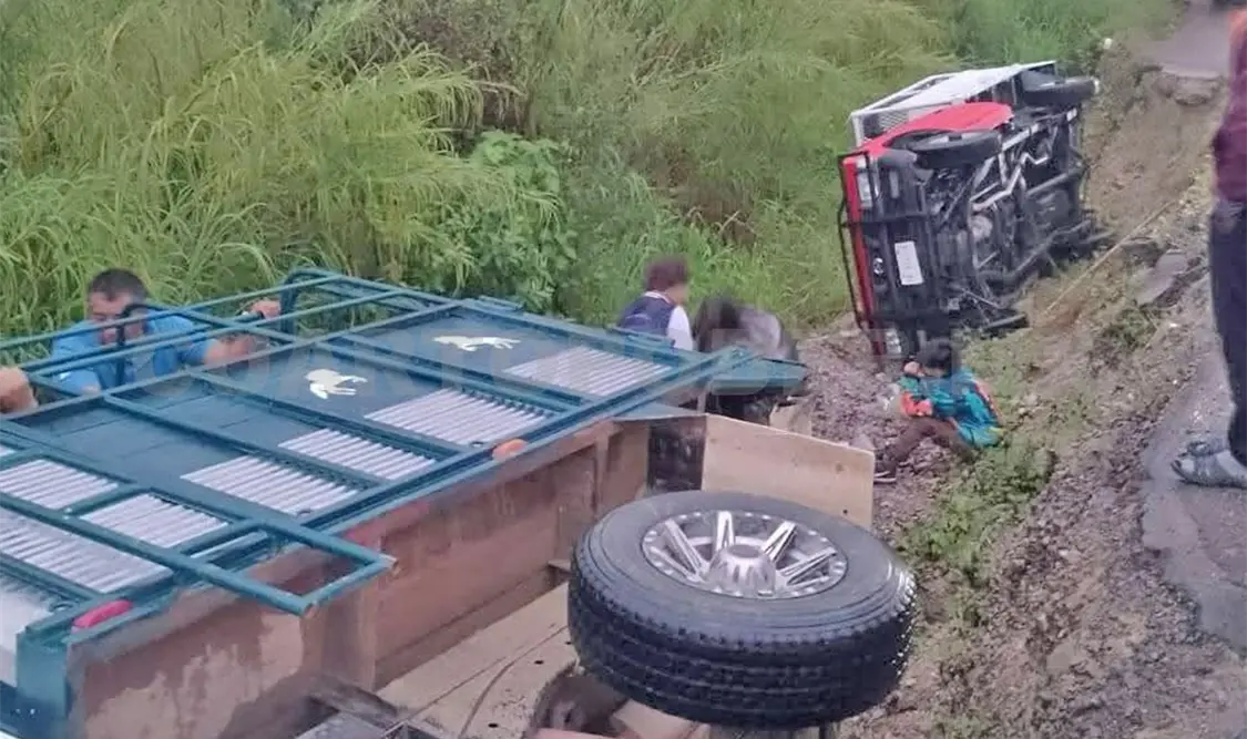Se trataba de dos camionetas Nissan, la primera con redilas, la cual llevaba pasajeros, presuntamente del servicio ejidal de transporte, y la segunda con caja seca, procedente del estado de Yucatán, propiedad de una empresa. Los vehículos quedaron fuera del camino, volcando.