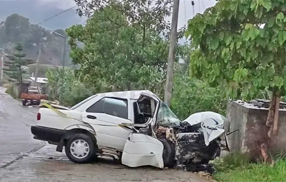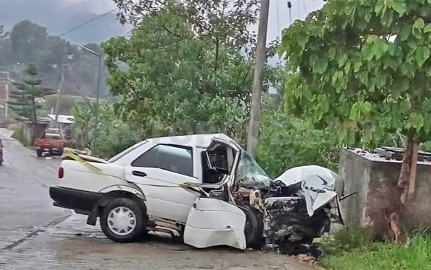 Se trataba de un Nissan Tsuru que quedó destrozado en la vía mojada, aparentemente por el exceso de velocidad.