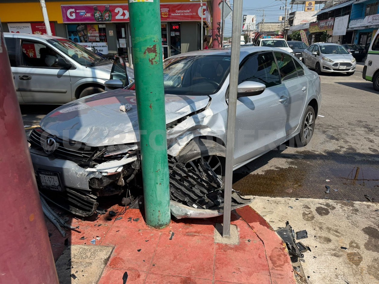 Sin embargo, al realizar la maniobra presuntamente le hizo corte de circulación a un automóvil Jetta que iba en sentido contrario, lo cual derivó en la colisión. Por ello, el conductor perdió el control y terminó impactado contra un poste de energía eléctrica.