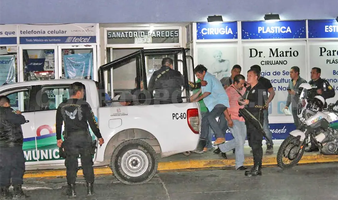 Cerca de la medianoche, la Policía Ministerial de la PGJE subió a una patrulla a los tres acompañantes del herido y se los llevó ante el Ministerio Público.