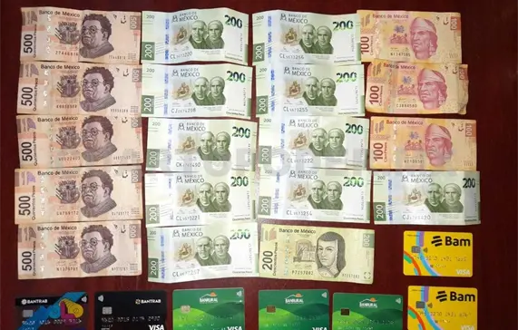 El hombre al notar la presencia de las patrullas pretendió darse a la fuga a bordo de una motocicleta de la marca BMW, color blanco con azul, por lo que fue sometido a una revisión, encontrándole en su poder siete tarjetas de distintos bancos, las cuales tenían diferentes nombres, además llevaba cinco mil pesos en efectivo.