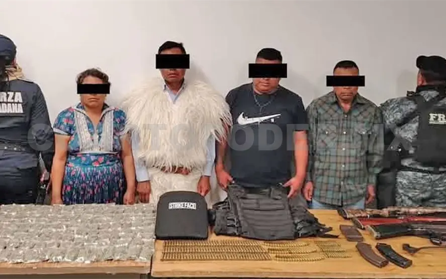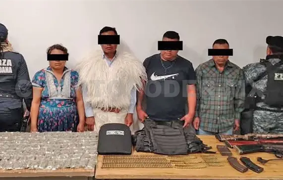 La Secretaría de Seguridad del Pueblo (SSP), a través de la Fuerza de Reacción Inmediata Pakal (FRIP), aprehendió a tres personas del sexo masculino y una del femenino con armas de fuego, cartuchos, presuntos narcóticos y vehículos con reporte de robo en Rincón Chamula.