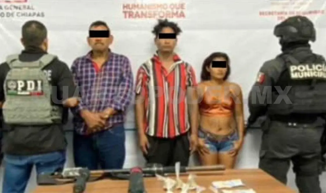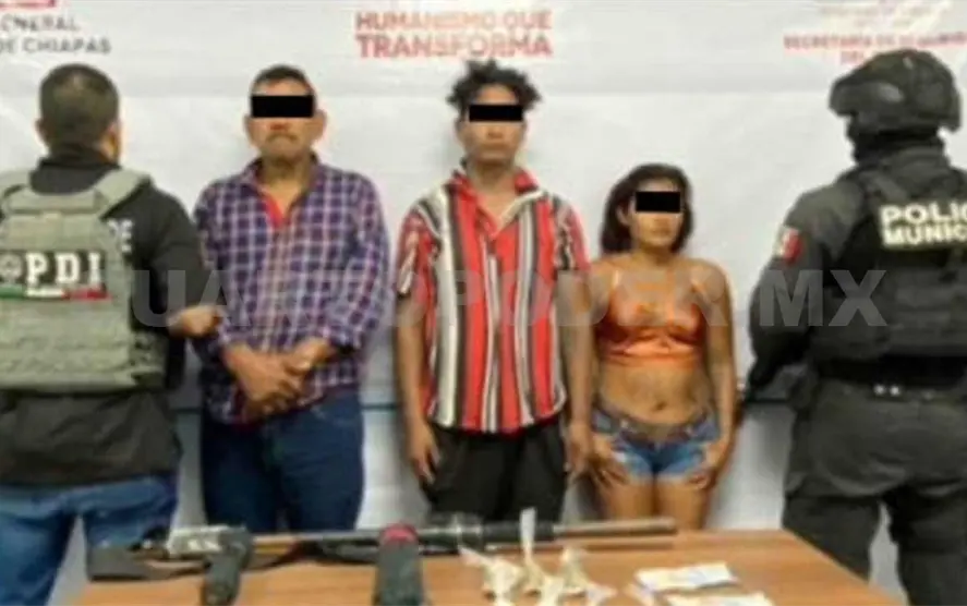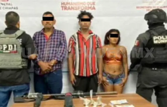 Mientras que en Tuxtla Gutiérrez detuvieron en flagrancia a Hugo “N”, David “N”, Rosario “N” y una menor de identidad reservada, como presuntos responsables de los delitos contra la salud, homicidio en grado de tentativa y portación de arma de fuego.