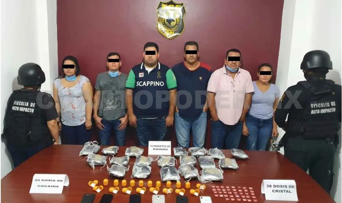 La Fiscalía General del Estado (FGE), a través de la Fiscalía de Alto Impacto ubicó y detuvo a Isaías “N”, José Luis “N”, Tiare “N”, originarios de Veracruz; así como a José “N”, de Coahuila; Gladis “N”, de Tamaulipas; y José Octavio “N”, de Chiapas, por el delito contra la salud.