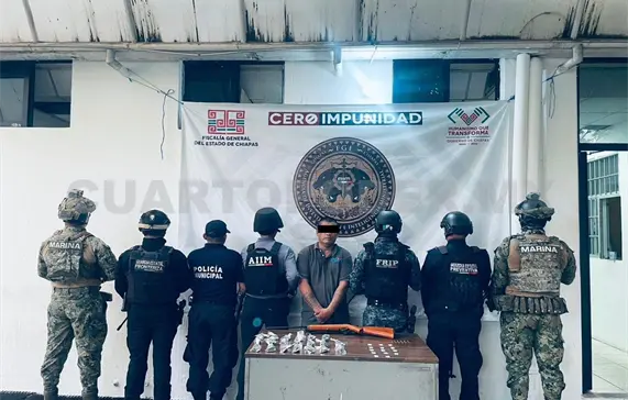 La Secretaría de Seguridad del Pueblo (SSP), a través de la Fuerza de Reacción Inmediata Pakal (FRIP), Guardia Estatal Preventiva (GEP), Guardia Estatal Fronteriza (GEF), lograron la detención de una persona del sexo masculino.