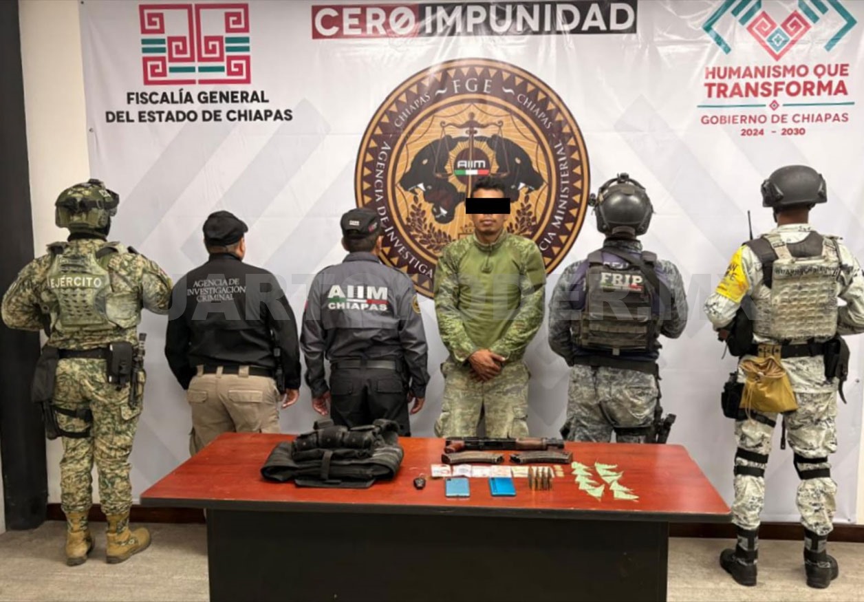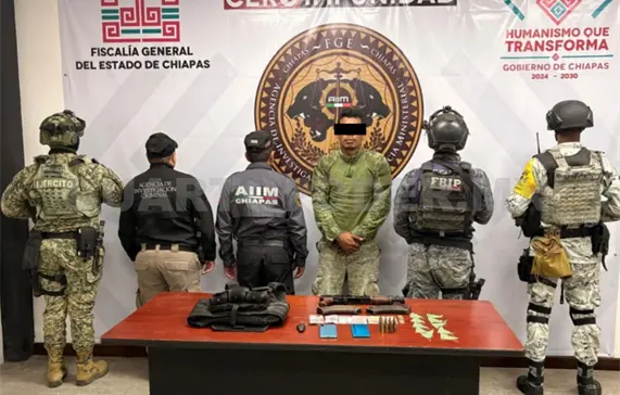 Asimismo, por la portación de arma de fuego sin licencia, de uso exclusivo de las Fuerzas Armadas, en Cintalapa de Figueroa.