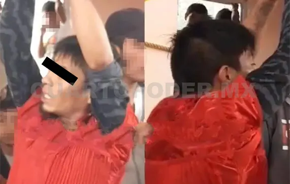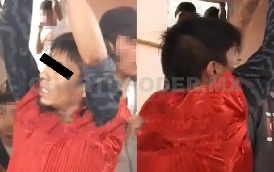 El sujeto una vez capturado fue llevado por la multitud a una de las canchas del lugar; posteriormente, fue golpeado, amarrado, colgado, así como obligado a ponerse una nagua y colgarse en el hombro las demás prendes robadas.