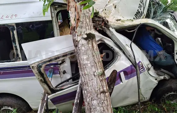Trascendió que el chofer presuntamente se quedó dormido al volante y por ello perdió el control de la unidad, lo que hizo que saliera del camino y finalmente chocara contra unos árboles.