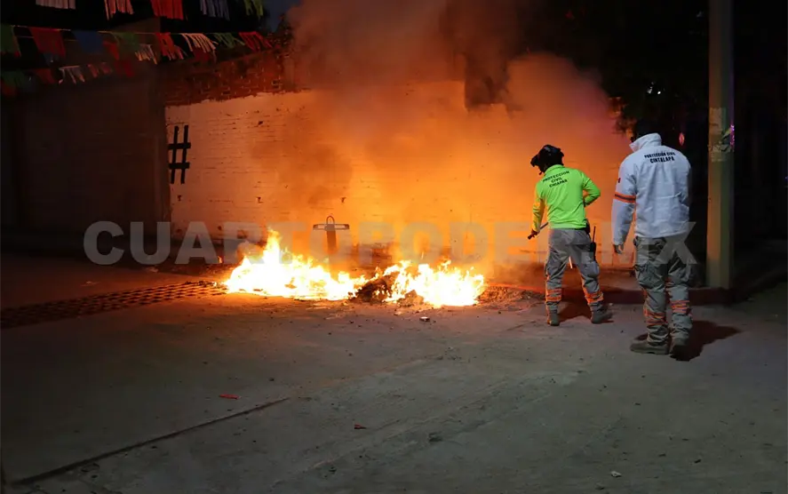 Rápidamente, elementos de Protección Civil de la localidad se trasladaron hasta el punto en cuestión, pero lamentablemente al llegar solo encontraron los recipientes de residuos completamente calcinados.