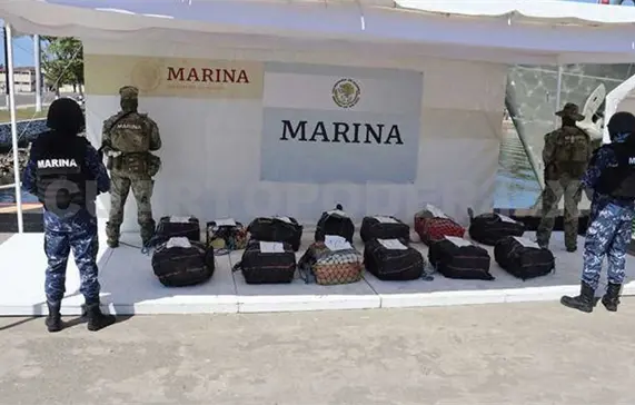 Un cargamento de 590 kilogramos de cocaína que era transportada en una embarcación en la costa chiapaneca, fue asegurada por elementos de la Secretaría de Marina Armada de México, que detuvieron a dos personas de nacionalidad ecuatoriana.