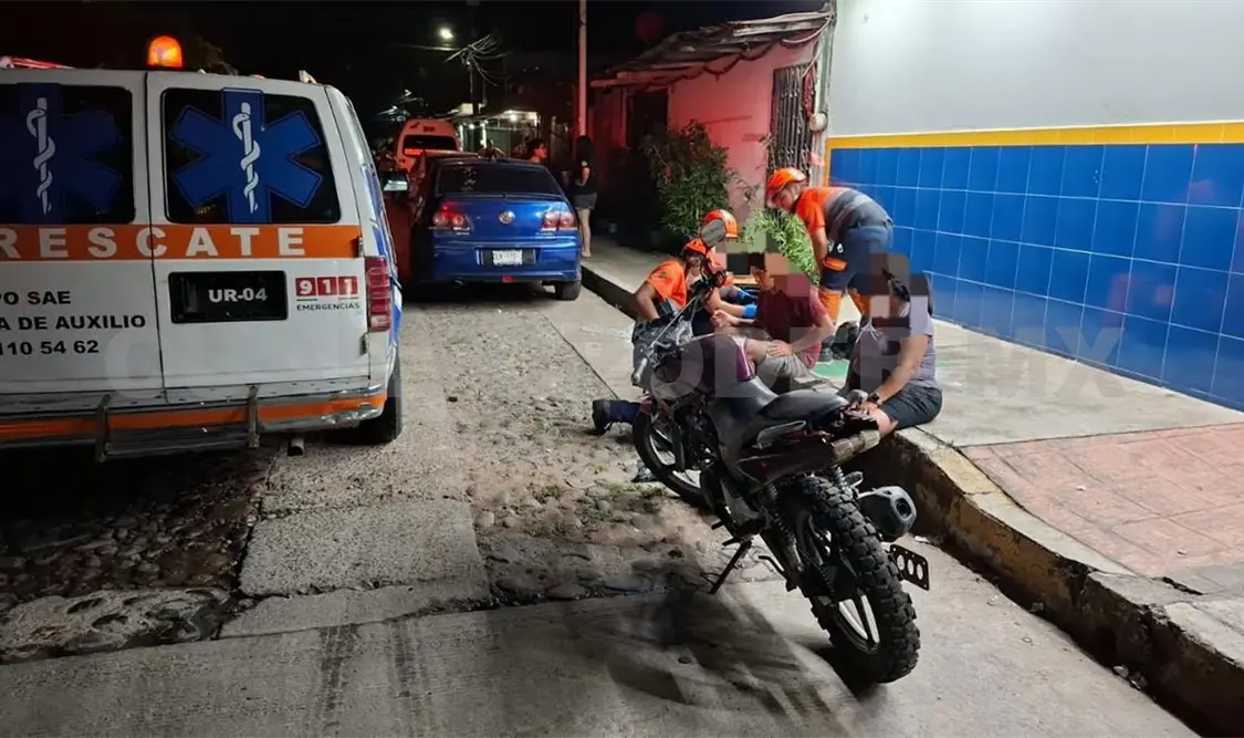 Dos personas resultaron lesionadas al derrapar la motocicleta en que se desplazaban luego que un vehículo les cerró el paso. Fue sobre el camino a La Pita, a la altura de la entrada al fraccionamiento La Flora, en donde ocurrió el percance que movilizó a los cuerpos de emergencia.
