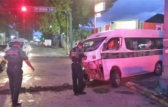 Las unidades involucradas son una combi colectiva tipo Urvan, de la ruta Palmeras-Centro, número económico 9-10, manejada por Carlos “N”, de 43 años de edad, quien al igual que la pasajera que iba en la unidad, resultaron lesionados.