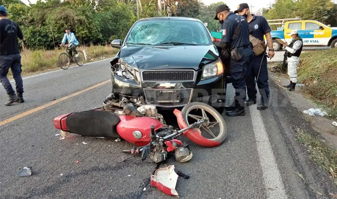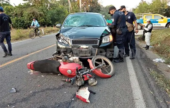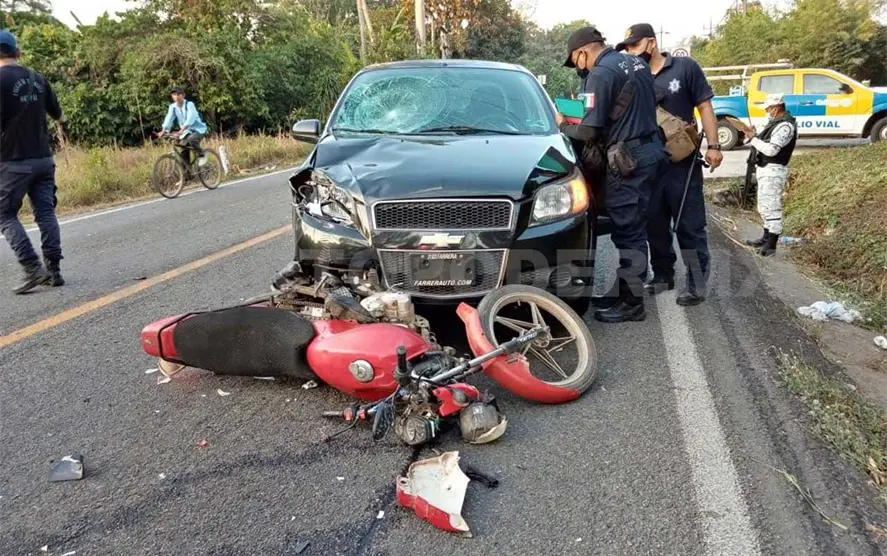 Los hechos ocurrieron en el kilómetro 10.8, poco antes de llegar a la zona arqueológica Izapa, en donde presuntamente un vehículo marca Chevrolet tipo Aveo, color negro, invadió carril contrario e impactó a la motocicleta marca Italika, color rojo.