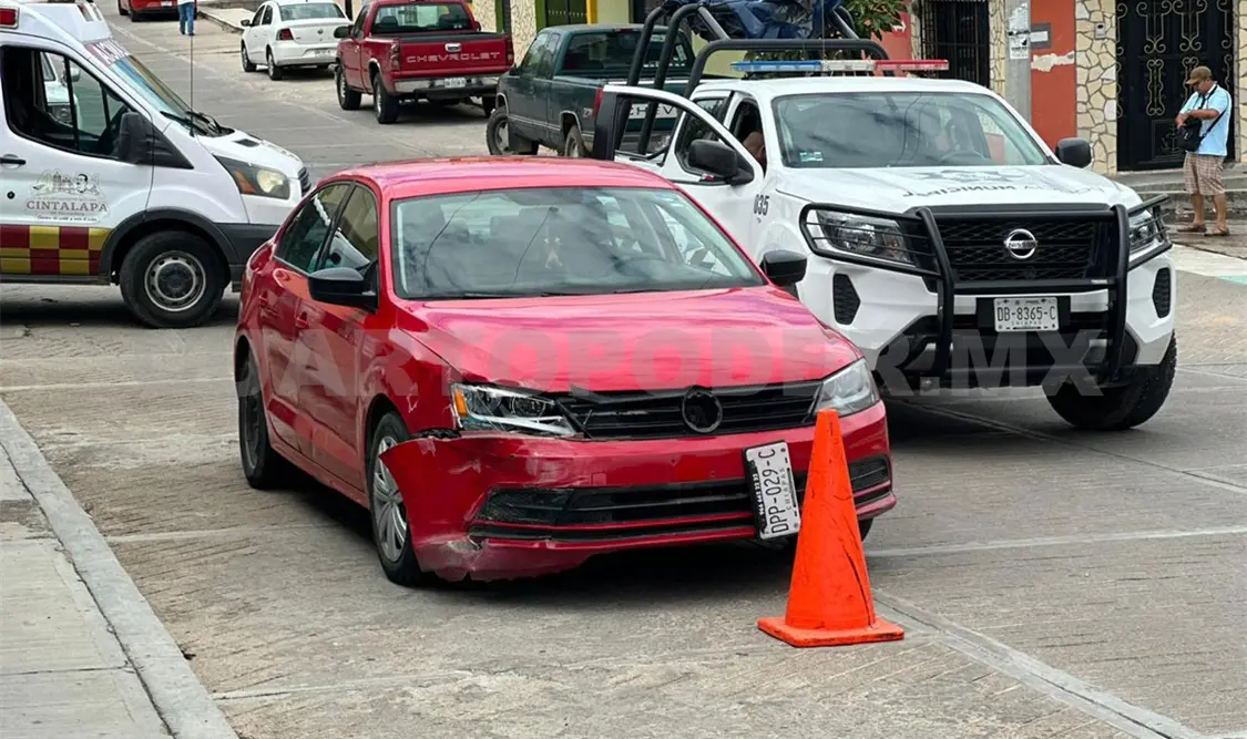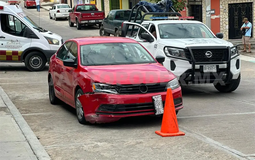 La unidad roja involucrada terminó con un golpe en el costado derecho, el cual provocó que se desprendiera una parte de la defensa delantera, dejando la placa de circulación colgando. El propietario resultó sin ninguna lesión.
