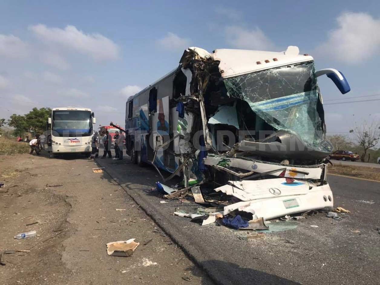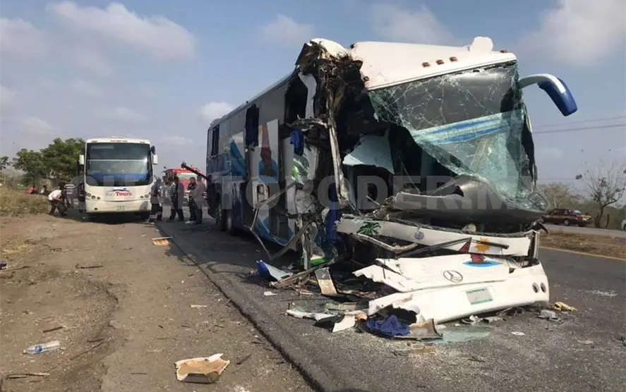 Más de 100 chiapanecos que viajaban en tres diferentes autobuses rumbo a Monterrey, sufrieron un fuerte percance vial en el tramo carretero Tampico-Mante, en el kilómetro 37 a la altura del ejido Benito Juárez.