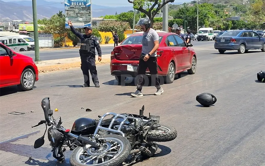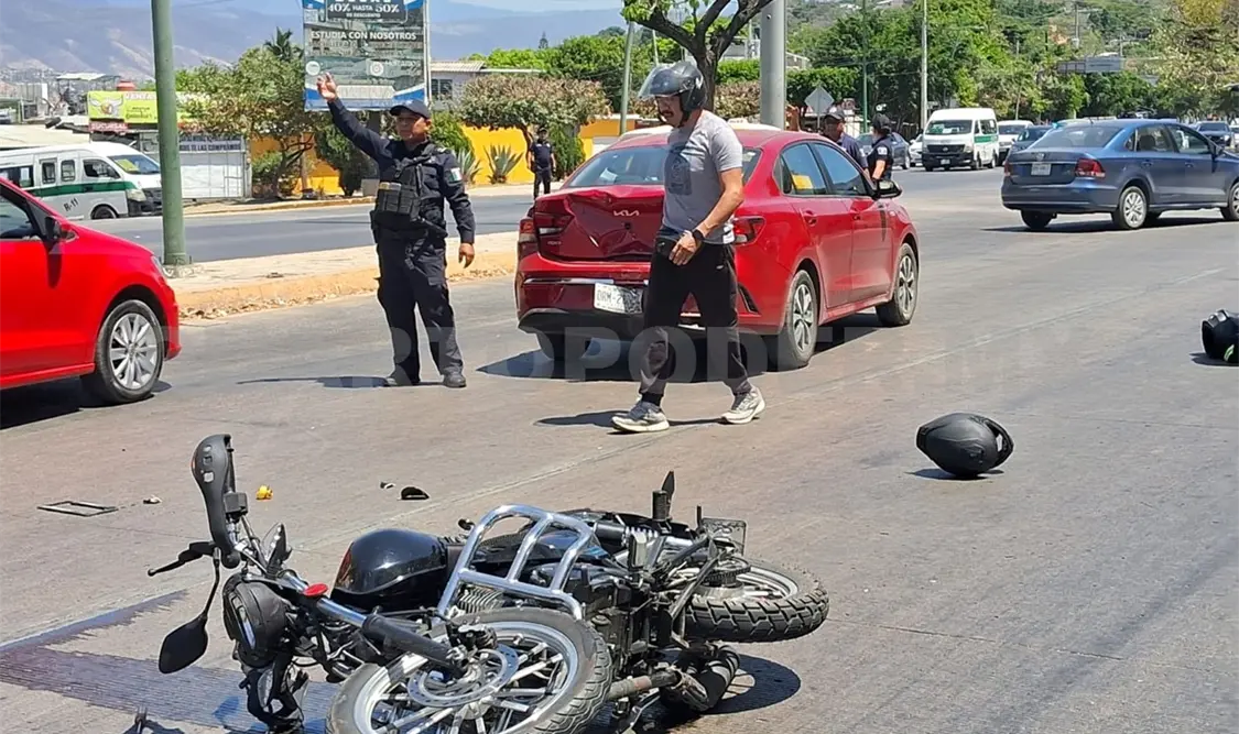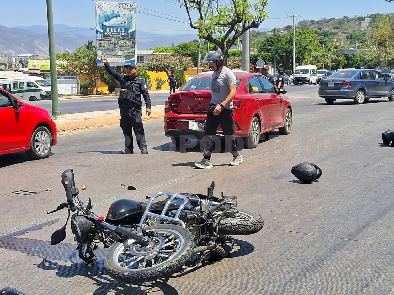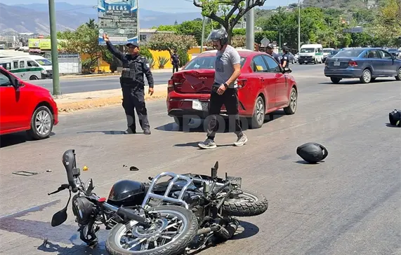 Dos personas a bordo de una motocicleta se estrellaron contra un vehículo particular sobre el libramiento Sur, a la altura del crucero con el bulevar Samuel León Brindis de la capital Tuxtla Gutiérrez, resultando gravemente heridas.