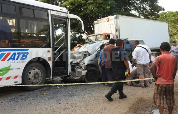 Las fuerzas del orden previamente habían informado que una vagoneta marca Chrysler tipo Voyager, con láminas de circulación TYF-8564 del estado de Puebla, y un autobús del transporte público de la ruta Tuxtla Gutiérrez-Julián Grajales colisionaron de frente.