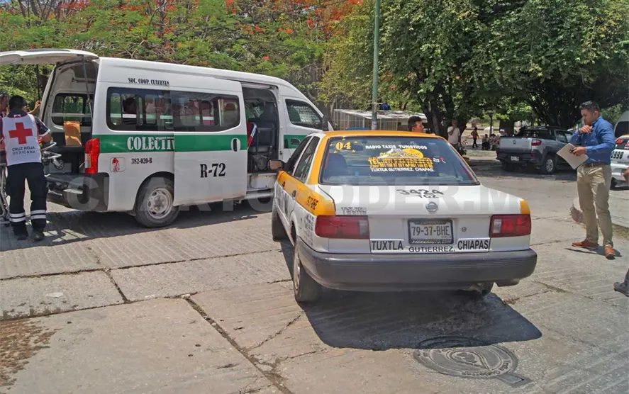 Dos personas del sexo femenino que viajaban en un colectivo resultaron lesionadas al ser impactadas por un taxi la tarde del lunes en la zona oriente de la capital chiapaneca; paramédicos trasladaron a las víctimas a un nosocomio.