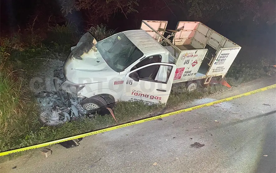 Las unidades implicadas eran una camioneta Nissan NP300 de la empresa RamaGas, con placas VM-2071-B de Tabasco y una motocicleta Sptfire 200 Italika, que estaba incinerada.