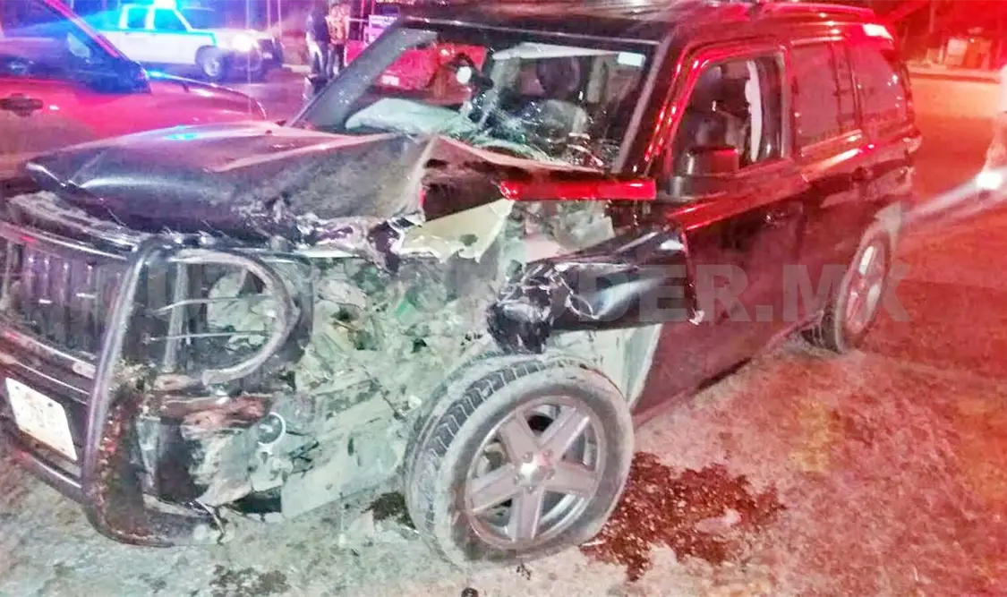 Sin embargo, en ese momento la unidad fue impactada por una veloz camioneta marca Jeep tipo Patriot de color negro que iba con exceso de velocidad.