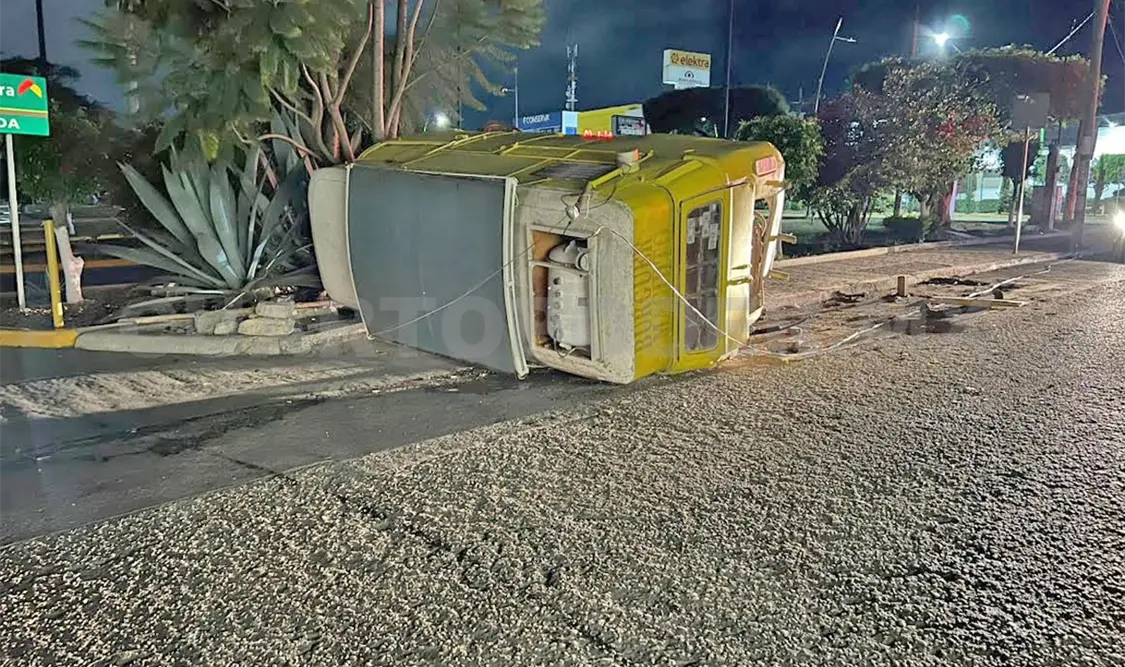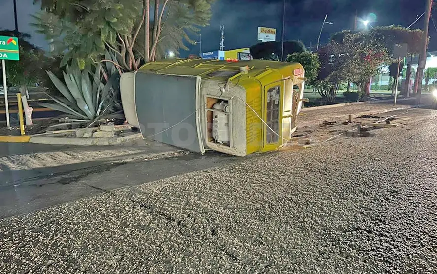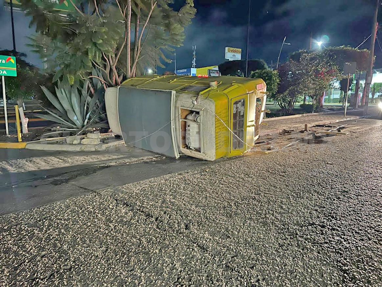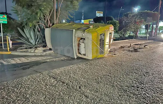 Un Volkswagen tipo combi, con venta de hot dogs terminó volcado sobre la calle tras ser impactado por un ebrio conductor la madrugada de ayer, lo que movilizó a policías de Vialidad de Comitán.