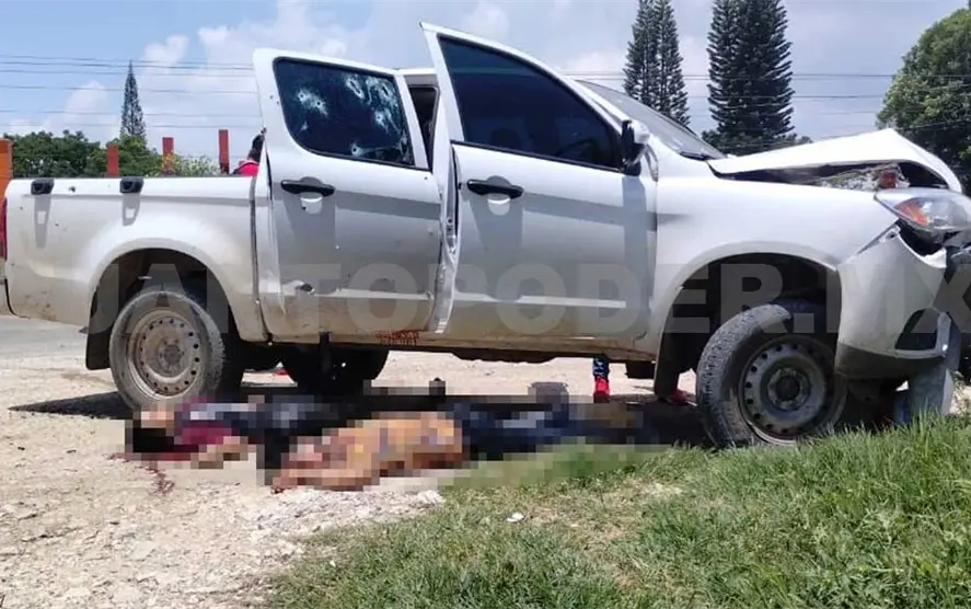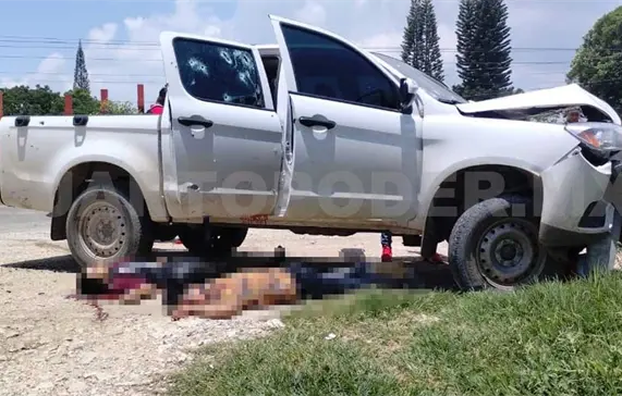 Dos jóvenes a bordo de una camioneta particular fueron rafagueados cuando trataban de huir a toda velocidad a la altura del Crucero de la Muerte y la entrada al municipio de Berriozábal.