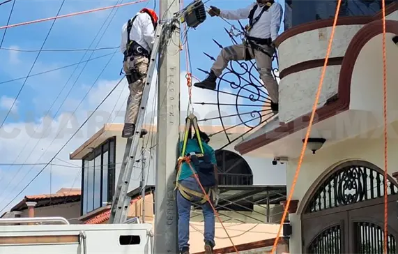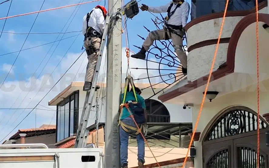 Un trabajador del servicio eléctrico sufrió un desmayo y quedó suspendido de unos arneses a un poste, propiedad de la Comisión Federal de Electricidad (CFE), en el fraccionamiento Magisterio Dos Mil.