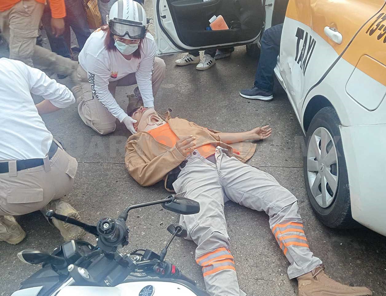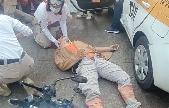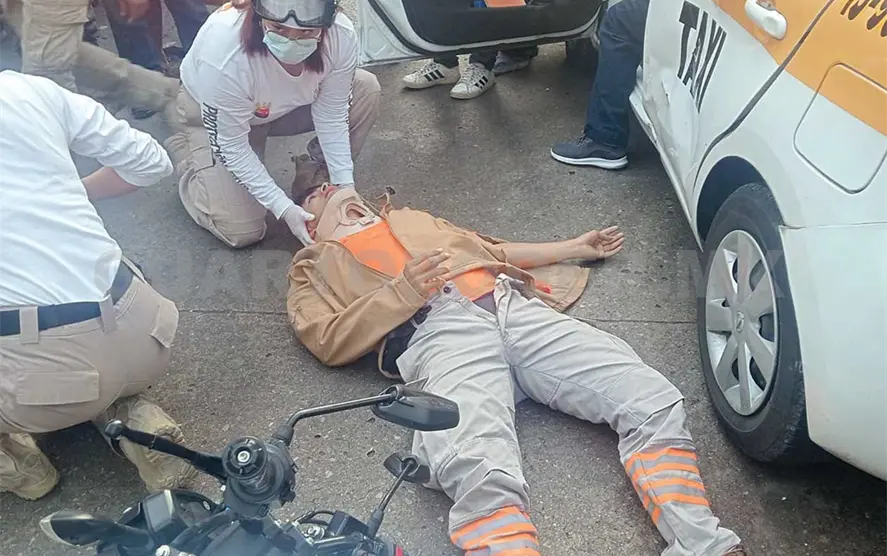 El percance se registró alrededor de las 07:25 horas, en el cruce de la 5.ª Sur y 1.ª Oriente, cuando un taxi se estampó de frente contra el joven rescatista.